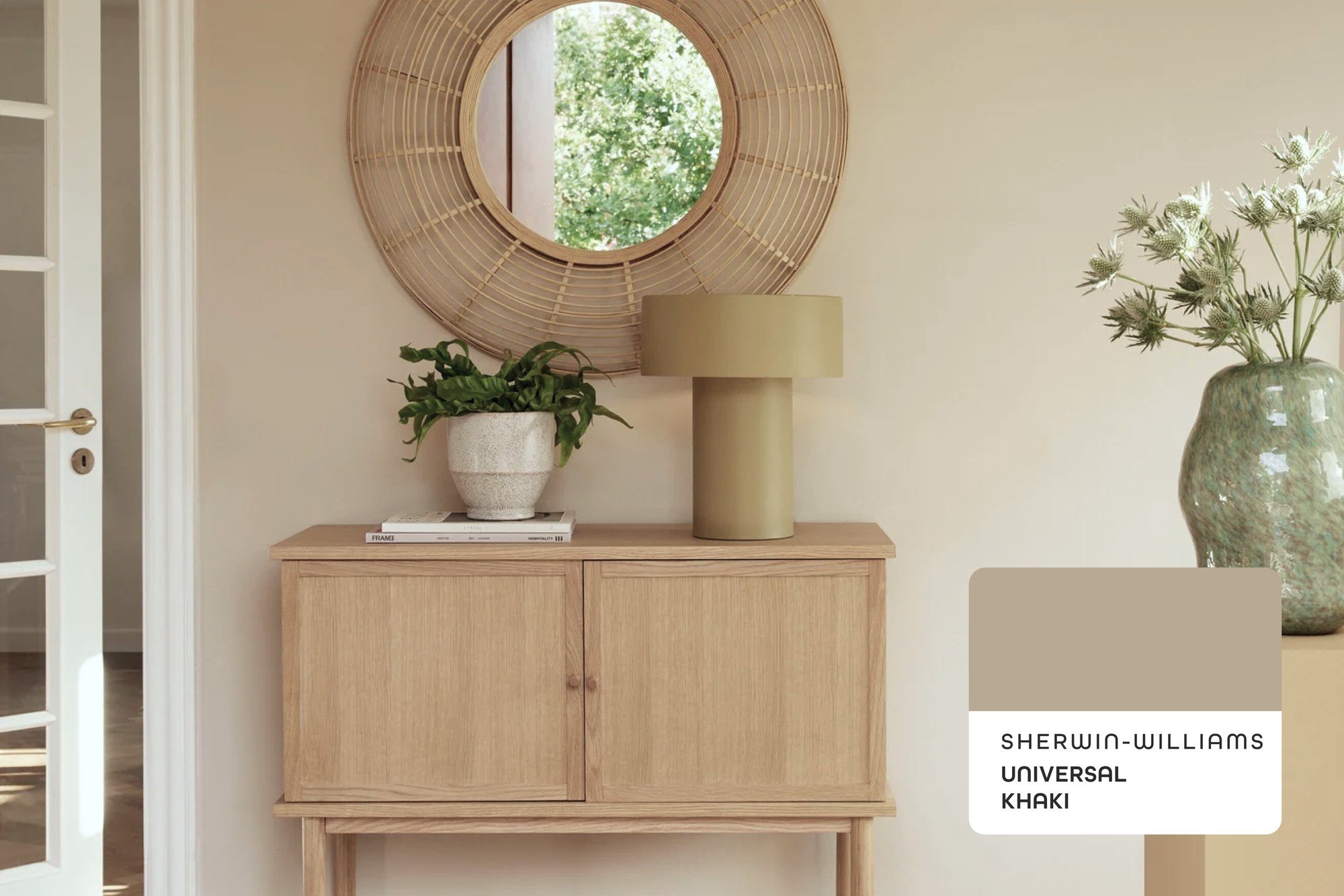 Universal Khaki bol pre rok 2026 zvolený výrobcom farieb Sherwin-Williams ako farba roka vďaka svojej praktickosti, univerzálnosti a trvalej hodnote. Je neutrálny, napriek tomu teplý - poskytuje harmonický, stály základ pre interiéry, ktorý sa ľahko kombinuje a vydrží v čase. Je to farba, ktorá rešpektuje jednoduchosť, prírodné materiály a príjemné bývanie.