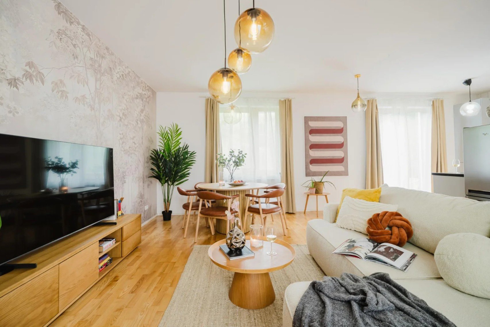 Vysoké stropy, presklené dvere a dostatok denného svetla premieňajú tento loftový apartmán na miesto, kde sa okamžite cítite doma. Na ploche 90 m² sa prirodzene prepája obývací priestor s kuchynským kútom, dve spálne a terasy s vonkajším posedením. Interiér vznikol s myšlienkou ponúknuť hosťom nielen plne vybavené zázemie, ale predovšetkým harmonický a útulný priestor na oddych aj každodenný život.