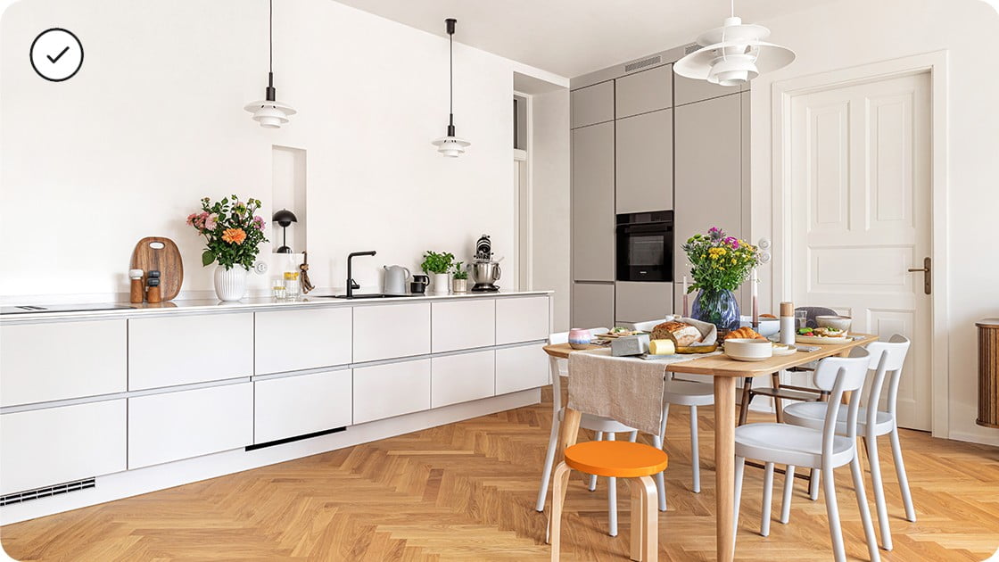 Dodanie, montáž a zapojenie spotrebičovPostaráme sa o všetko – kuchyňu vám privezieme, zmontujeme a zapojíme spotrebiče. A vy si už za 8 týždňov užívate prvú večeru v novej kuchyni.