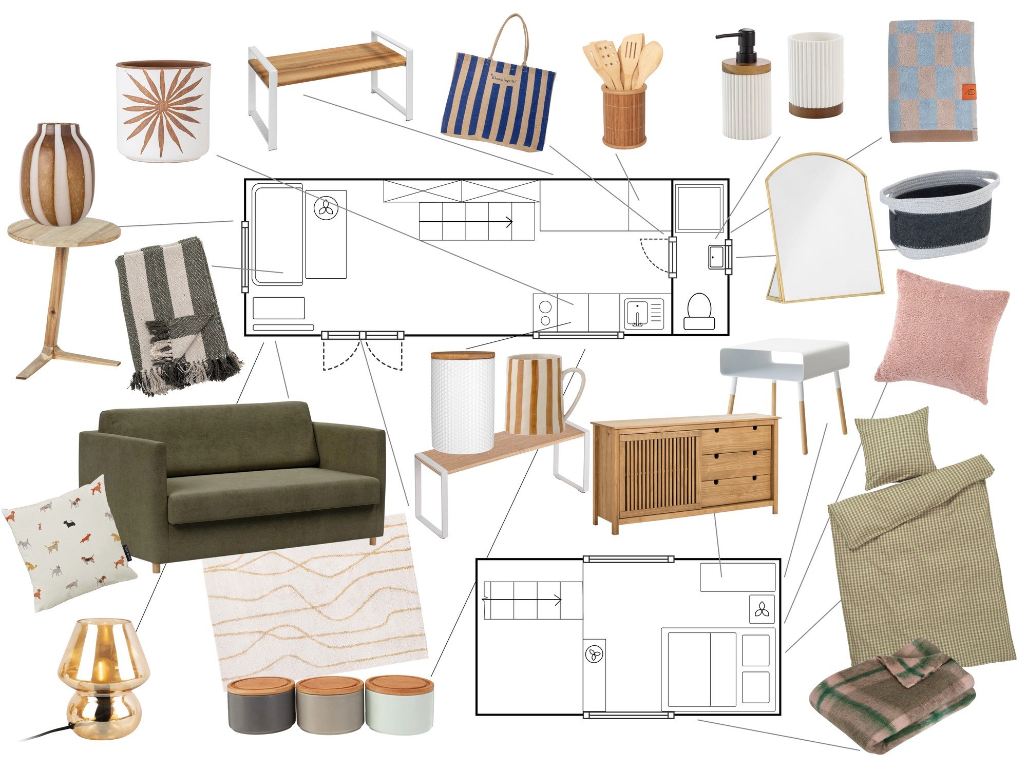 Praktické úložné priestory, otvorené police a prírodné dekorácie tvoria útulný a funkčný priestor.