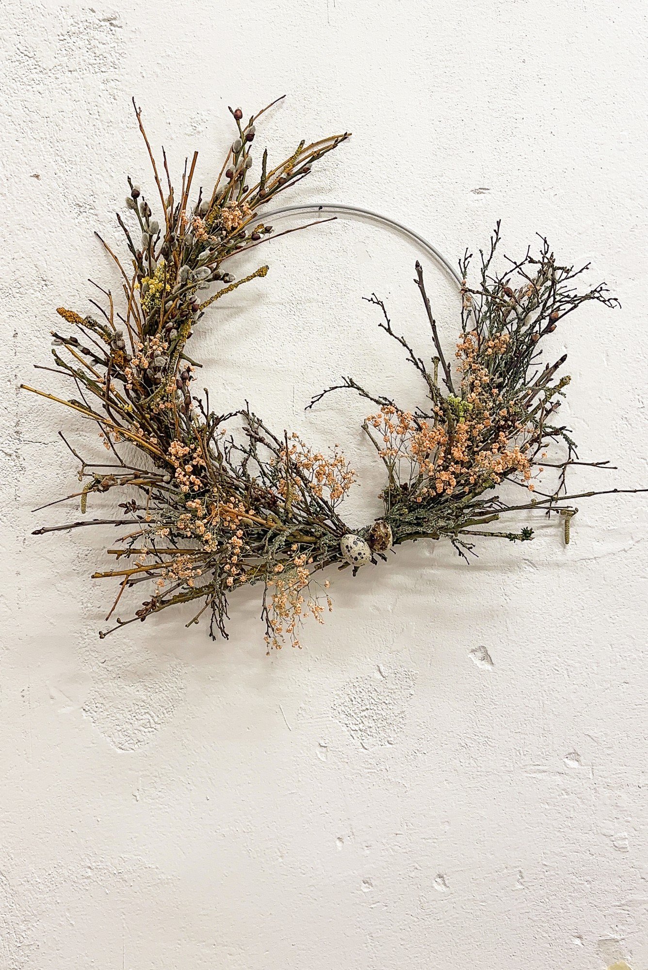 Jarný veniec z vetvičiek čučoriedky a nevestinho závoja
