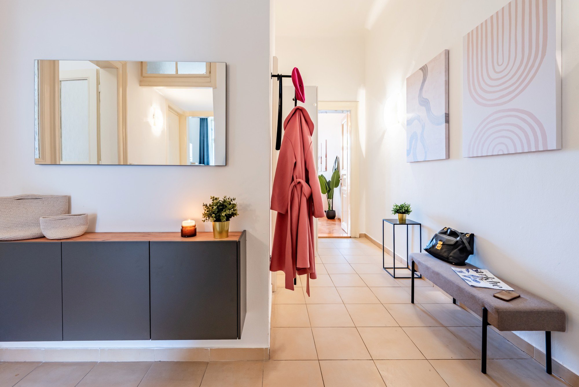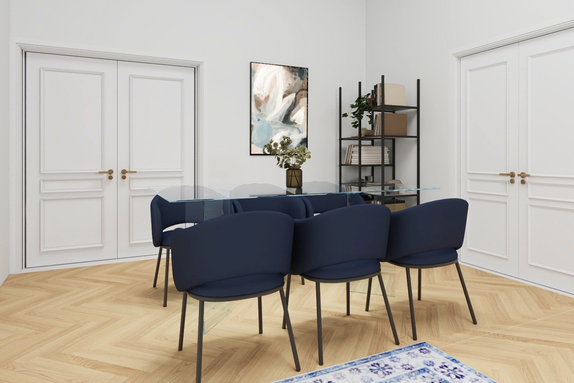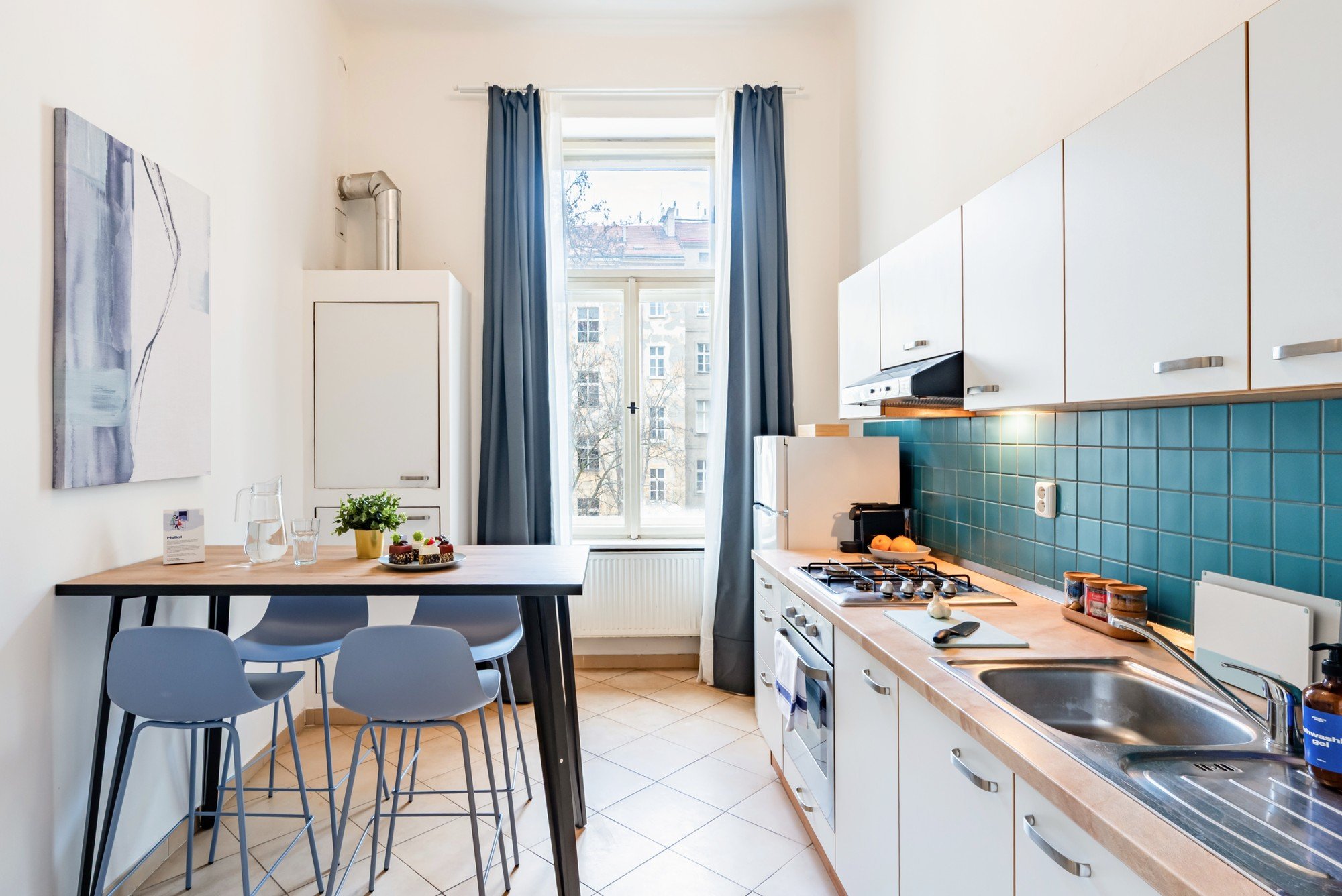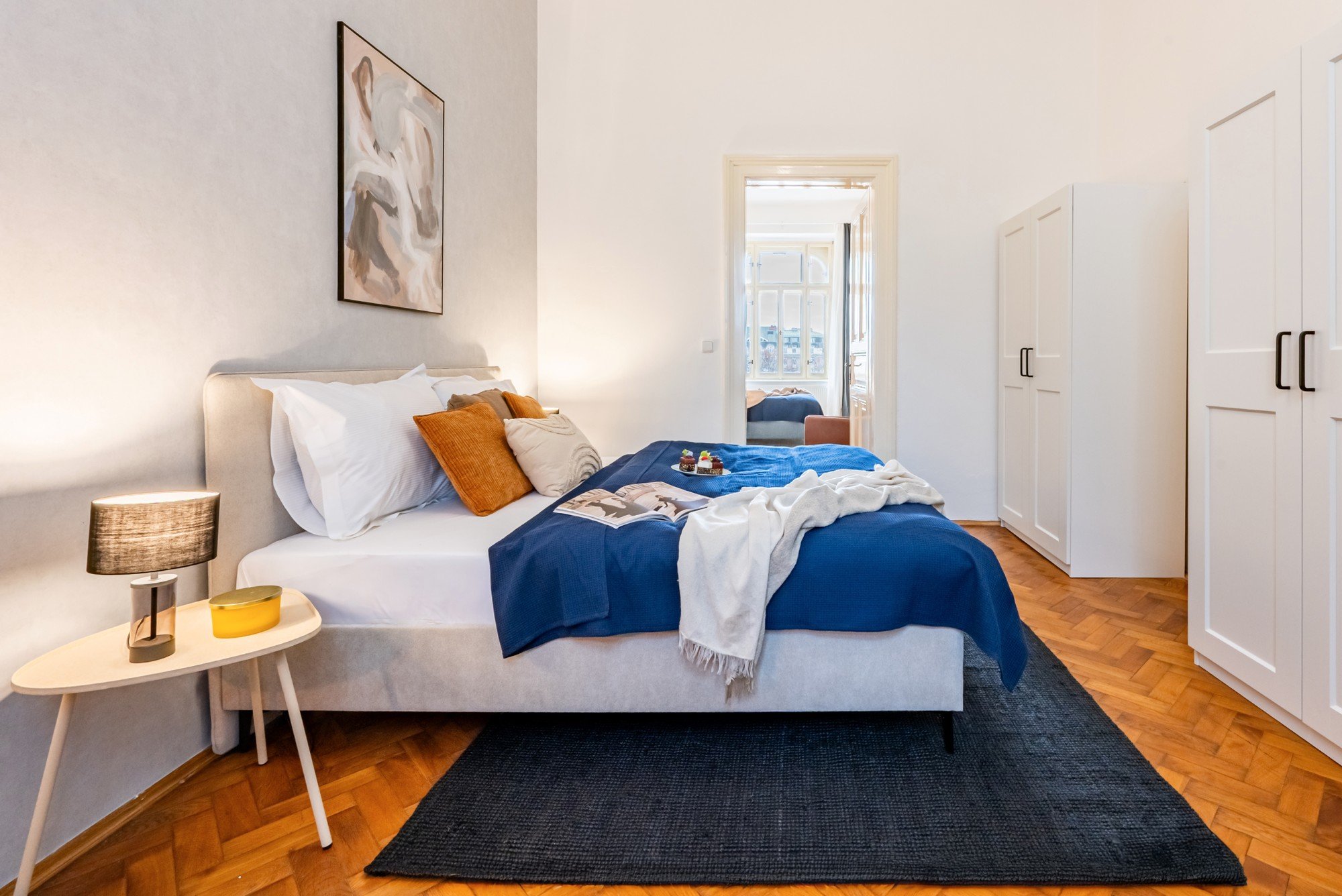 Vzdušný byt v historickom dome spája veľkorysé proporcie s premyslenými detailmi. Vysoké stropy, pôvodné parkety a kontrast tmavého dreva s jemnými odtieňmi modrej vytvárajú nadčasový interiér, ktorý je pokojný, elegantný a prirodzene útulný. Dispozícia navrhnutá pre každodenný život aj spoločné chvíle dokazuje, že komfort a charakter môžu ísť ruka v ruke.