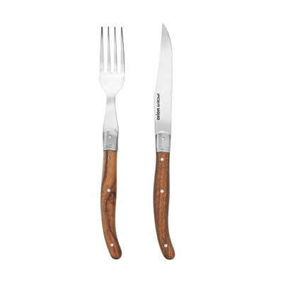 Steakový nôž a vidlička od značky Orion sú skvelí pomocníci pri grilovaní. Nôž so zúbkovaným ostrím a vidlička si hravo poradia nielen s grilovaným mäsom. Dĺžka vidličky je 22 cm a dĺžka noža 23 cm.
