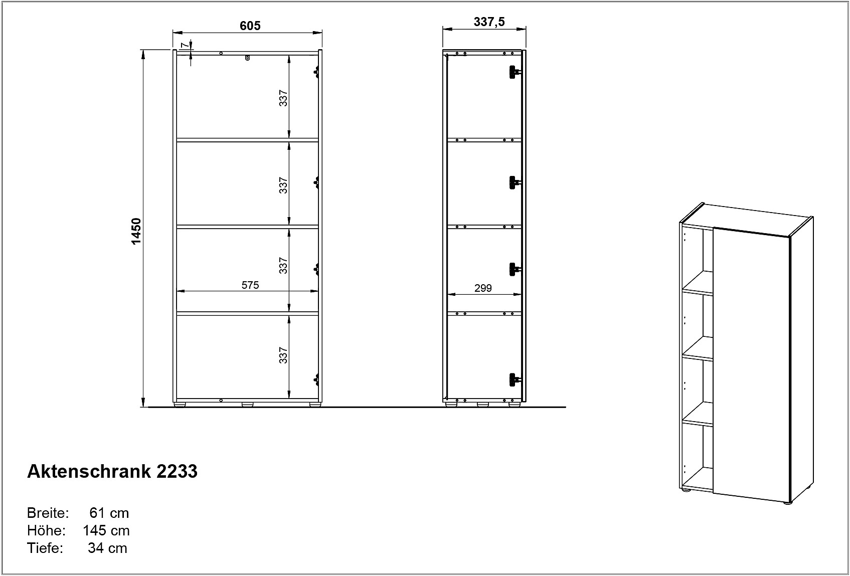 Knižnica Adrano od značky Germania ponúka praktický úložný priestor. Knižnica je vybavená dvierkami, za ktorými sa nachádzajú tri pevné police s nosnosťou až 10 kg. Knižnica je dodávaná s piatimi čiernymi plastovými klzákmi. Dvierka nemajú úchytky a je možné ich namontovať na pravú alebo ľavú stranu. Povrchová úprava je odolná proti poškriabaniu, hrany sú odolné proti nárazu. Bola vyrobená v Nemecku.