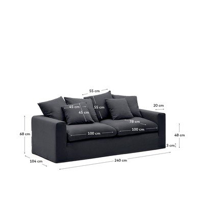 Antracitová ľanová pohovka 240 cm Nora – Kave Home
