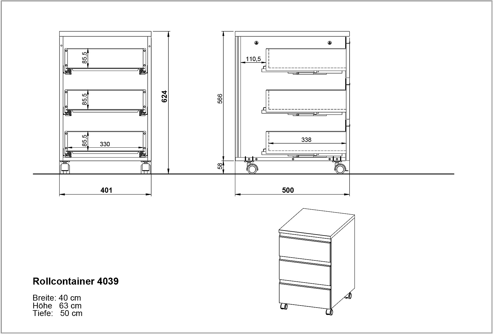 Na kolieskach, z drevotriesky, povrchová úprava: melamín, matná, antracitová, šírka 40 cm, výška 63 cm, hĺbka 50 cm