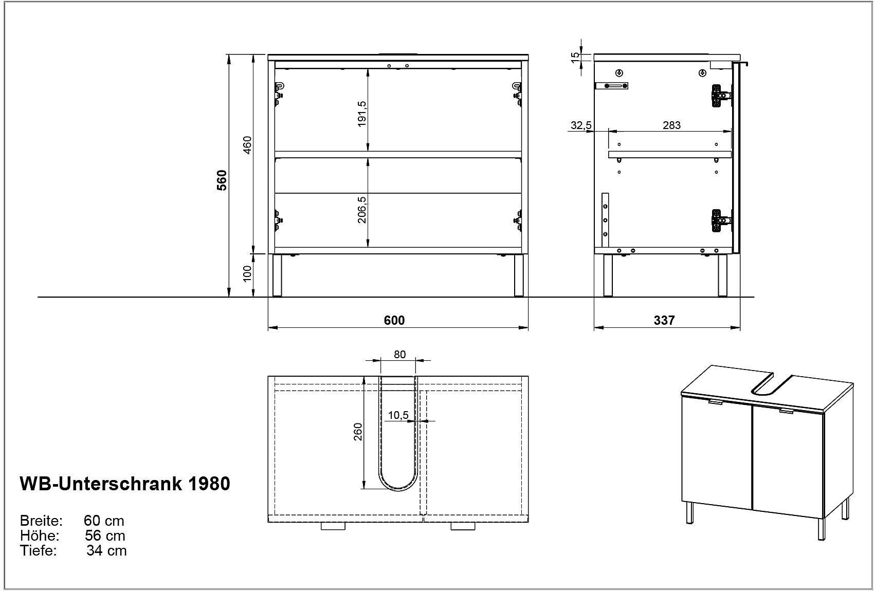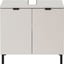 Skrinka pod umývadlo Arcena od značky Germania je praktickým a elegantným doplnkom do vašej kúpeľne. Skrinka je vybavená dvoma dvierkami a nastaviteľnou policou s nosnosťou až 10 kg. Horná polica má výrez pre sifón a unesie až 3 kg, spodná polica potom až 10 kg. Skrinka stojí na štyroch čiernych kovových nožičkách a má čierne kovové úchytky. Vďaka integrovanému tlmiču sa dvierka zatvárajú pomaly a ticho. Povrch je odolný proti poškriabaniu a nárazom.