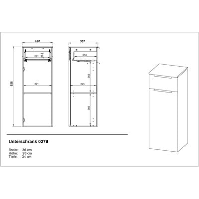 Vysoká/závesná, z drevotriesky, povrchová úprava: melamín, antracitová, šírka 36 cm, výška 93 cm, hĺbka 34 cm