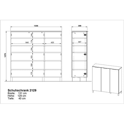 Z drevotrieskyPovrchová úprava: melamín/povrchová úprava: skloLeskláSiváPočet párov topánok 32 Šírka 131 cmVýška 128 cmHĺbka 40 cm