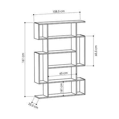 Mito je geometrická knižnica v dekore duba. Aby bezpečne slúžila svojmu účelu, je nutné ju po zostavení pripevniť k stene.