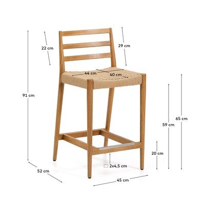 Barová stolička Analy od značky Kave Home. Sedadlo je ručne vypletané z papierového vlákna, čo zaručuje jedinečný vzhľad a pohodlie.