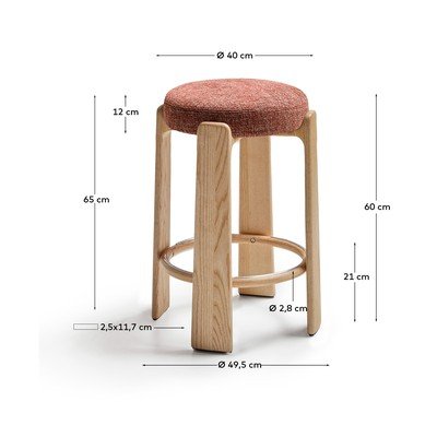 Barová stolička Granite od značky Kave Home. Čalúnenie z recyklovaného polyesteru a konštrukcia z certifikovaného dreva zaručujú udržateľnú a zodpovednú voľbu.