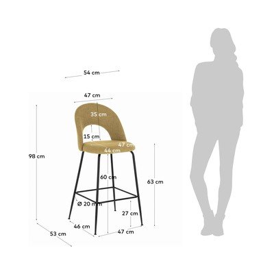 4 ks, čalúnené, v horčicovej farbe, výška sedadla 63 cm