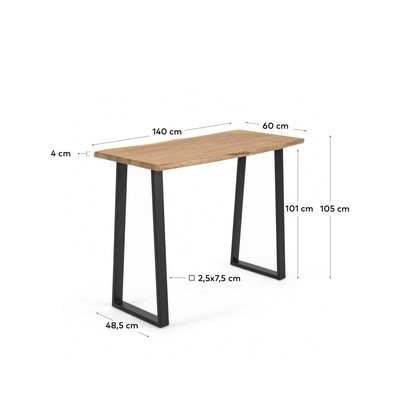 Barový stôl Alaia od značky Kave Home zaujme kombináciou masívnej agátovej dosky s prírodnou kresbou dreva a minimalistickej čiernej kovovej konštrukcie. Každý stôl je vďaka jedinečnej štruktúre a farebným tónom dreva originálom. Doska stola s rozmermi 60 x 140 cm poskytuje dostatok priestoru na servírovanie nápojov a občerstvenia.