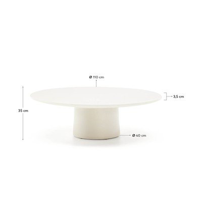 Záhradný konferenčný stolík Albanella od značky Kave Home predstavuje harmonické spojenie štýlu a praktickosti. Tento okrúhly stolík s lesklou povrchovou úpravou je vyrobený z GFRC, kompozitného materiálu z cementu vystuženého sklenenými vláknami. Vďaka tomu je ľahký, odolný proti opotrebovaniu a zároveň si zachováva robustnú konštrukciu.