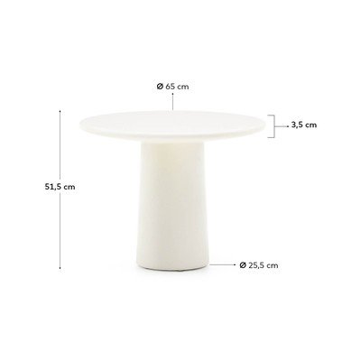 Konferenčný stolík Albanella od značky Kave Home predstavuje harmonické spojenie štýlu a praktickosti. Tento okrúhly stolík s lesklou povrchovou úpravou je vyrobený z GFRC, kompozitného materiálu z cementu vystuženého sklenenými vláknami. Vďaka tomu je ľahký, odolný proti opotrebovaniu a zároveň si zachováva robustnú konštrukciu.