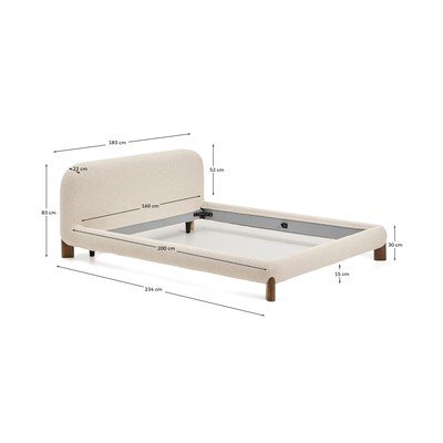 Odina od značky Kave Home je čalúnená dvojlôžková posteľ bez roštu. Zaoblený dizajn vytvára mäkkú a útulnú siluetu, zatiaľ čo plne snímateľný poťah zaisťuje jednoduchú údržbu.