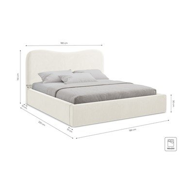 Posteľ Kahai od značky Makamii je elegantná dvojlôžková posteľ, ktorá kombinuje pohodlie s praktickým úložným priestorom. Jej čalúnený rám a vlnito tvarované čelo dodávajú spálni moderný a útulný vzhľad.