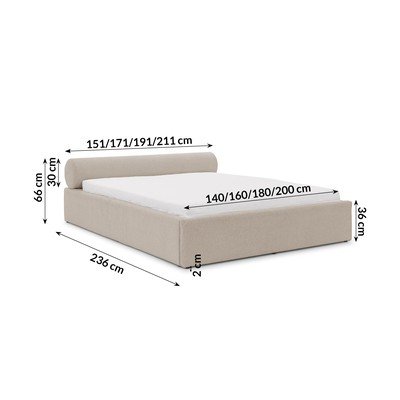 200x200 cm, s úložným priestorom, s roštom, čalúnená, ženilková, béžová