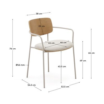 Jedálenská stolička s lakťovými opierkami Maureen od značky Kave Home. Vďaka stohovateľnosti ju ľahko uskladníte a ušetríte miesto.