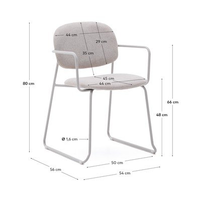 Jedálenská stolička s podrúčkami Meli od značky Kave Home. Má praktické chrániče nôh, ktoré zabraňujú poškriabaniu podlahy.