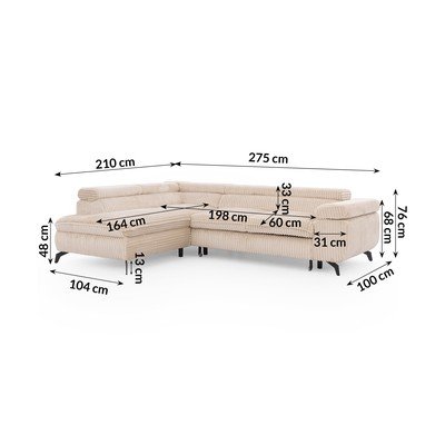 MenčestrováPolohovacia/rozkladacia/s úložným priestoromĽavý roh/do LBéžováVhodná pre domácich miláčikov/odolná proti škvrnámŠtvormiestnaŠírka 275 cm