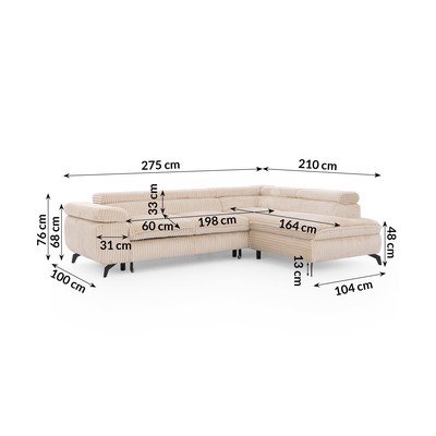 MenčestrováPolohovacia/rozkladacia/s úložným priestoromPravý roh/do LBéžováVhodná pre domácich miláčikov/odolná proti škvrnámŠtvormiestnaŠírka 275 cm