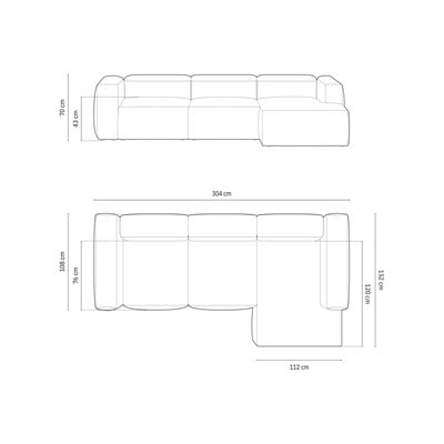 Menčestrová, pravý roh/s leňoškou, béžová, štvormiestna, šírka 304 cm