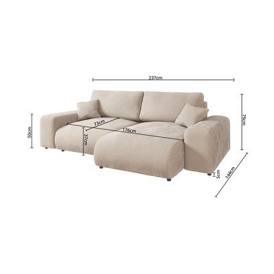 Menčestrová, pravý roh/ľavý roh/variabilná/s leňoškou, béžová, trojmiestna, šírka 237 cm