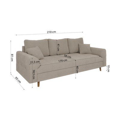 Z textílie buklé, béžová, trojmiestna, šírka 210 cm