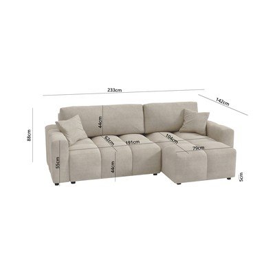 Rozkladacia/s úložným priestorom, pravý roh/ľavý roh/variabilná/s leňoškou, béžová/svetlohnedá, trojmiestna, šírka 233 cm