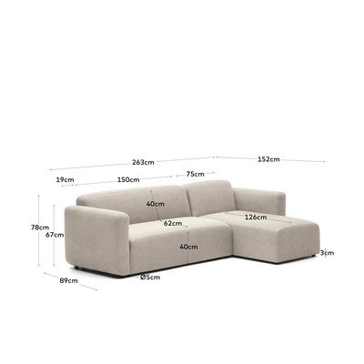 Pravý roh/ľavý roh/variabilná/s leňoškou, béžová, štvormiestna, šírka 263 cm
