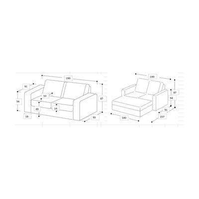 Na každodenné spanie/rozkladaciaBéžováDvojmiestnaŠírka 190 cmHĺbka 93 cmHĺbka sedadla 53 cm