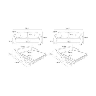 Modrá rozkladacia pohovka 235 cm Cezanne – Bobochic Paris