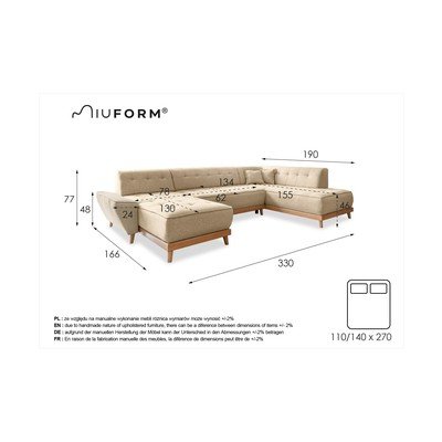 Rozkladacia/s úložným priestoromPravý roh/do tvaru "U"BéžováViacmiestnaŠírka 330 cmHĺbka 190 cmHĺbka sedadla 62 cm