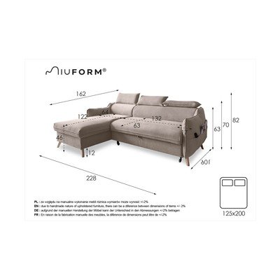 Polohovacia/rozkladacia/s úložným priestoromĽavý roh/s leňoškouBéžováTrojmiestnaŠírka 228 cmHĺbka 162 cmHĺbka sedadla 63 cm