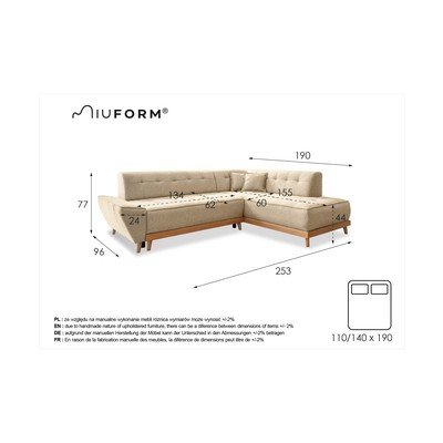 úložným priestorom a dá sa rozložiť, čím vznikne miesto na spanie. Balenie obsahuje 2 dekoratívne vankúšiky. K pohovke sa dá dokúpiť