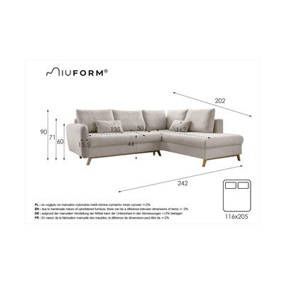 Rozkladacia/s úložným priestoromPravý roh/do LBéžováŠtvormiestnaŠírka 242 cmHĺbka 202 cmHĺbka sedadla 50 cm