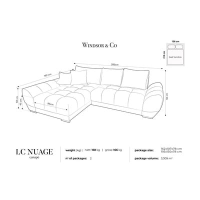 ZamatováRozkladacia/s úložným priestoromĽavý roh/s leňoškouBéžováVodoodolná/odolná proti škvrnámŠtvormiestnaŠírka 285 cm