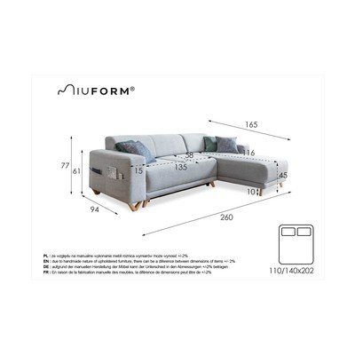 Rozkladacia/s úložným priestoromPravý roh/ľavý roh/variabilná/s leňoškouBéžováTrojmiestnaŠírka 260 cmHĺbka 165 cmHĺbka sedadla 58 cm