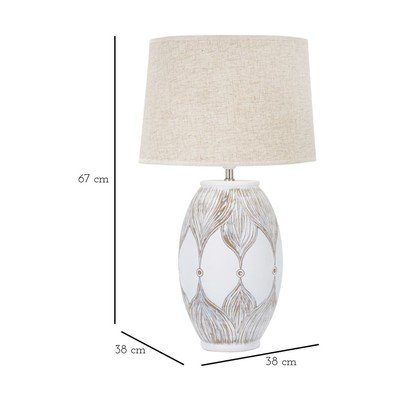 S textilným tienidlom, polyresinová, do zásuvky, biela/béžová, výška 67 cm