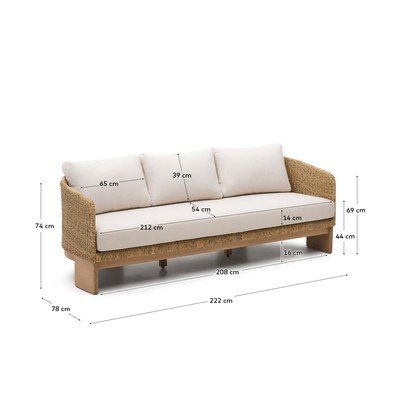 Z umelého ratanu, trojmiestna, béžová/v prírodnej farbe, šírka 222 cm, výška 74 cm, hĺbka 78 cm