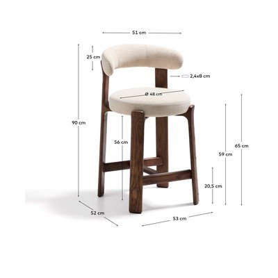 Barová stolička Granite od značky Kave Home. Vyniká čalúnením z recyklovaného polyesteru a drevenou konštrukciou s certifikáciou FSC™.