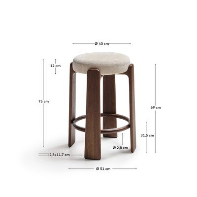 Barová stolička Granite od značky Kave Home. Čalúnenie je vyrobené z recyklovaného polyesteru a konštrukcia z FSC certifikovaného jaseňového dreva.