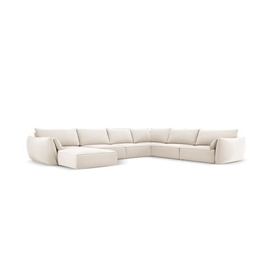 Béžová zamatová rohová pohovka (ľavý roh/do "U") Vanda – Mazzini Sofas