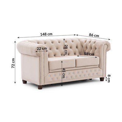 Zamatová, rozkladacia, chesterfield, béžová, vodoodolná/odolná proti škvrnám, dvojmiestna, šírka 148 cm