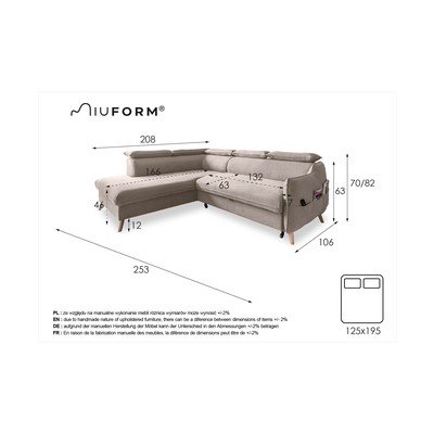 ZamatováPolohovacia/rozkladaciaĽavý roh/do LVodoodolná/vhodná pre domácich miláčikovBéžováŠtvormiestnaŠírka 253 cmHĺbka 208 cmHĺbka sedadla 63 cm