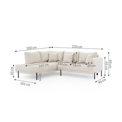 ŽenilkováĽavý roh/do LBéžováVhodná pre domácich miláčikov/odolná proti škvrnámŠtvormiestnaŠírka 233 cm