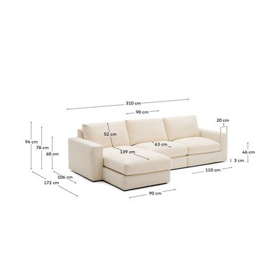 ŽenilkováĽavý roh/s leňoškouS odnímateľným poťahomBéžováŠtvormiestnaŠírka 310 cmHĺbka 172 cmHĺbka sedadla 63 cm