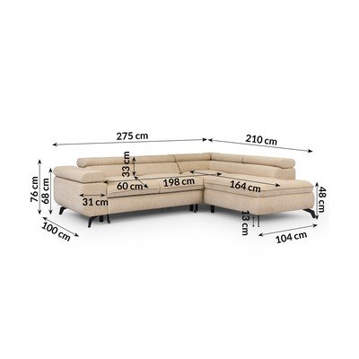 ŽenilkováPolohovacia/rozkladacia/s úložným priestoromPravý roh/do LBéžováVhodná pre domácich miláčikov/odolná proti škvrnámŠtvormiestnaŠírka 275 cm
